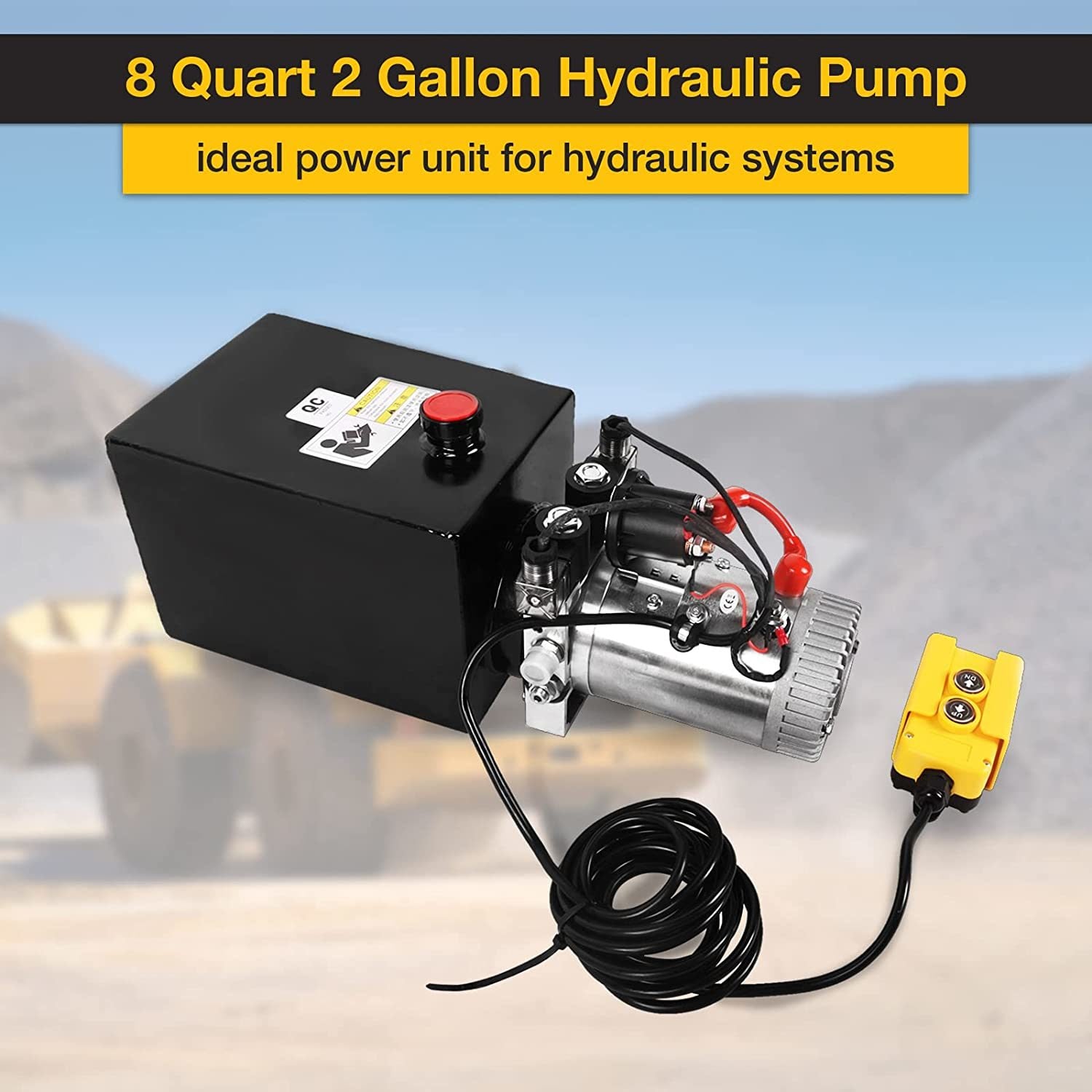 This Hydraulic Power Unit Double Acting Dump is designed with a 12VDC 1.6-3kw power motor and an 8 Quart metal reservoir. It is designed to be lightweight, making it easy to maneuver and carry around. It can be used on a car, truck, or any other vehicle with a 2-gallon tank. It is widely used in stackers, scissor lifts, dump trailers, lift trucks, snowplows, aerial platforms, road signs, material handling, and many lifting.